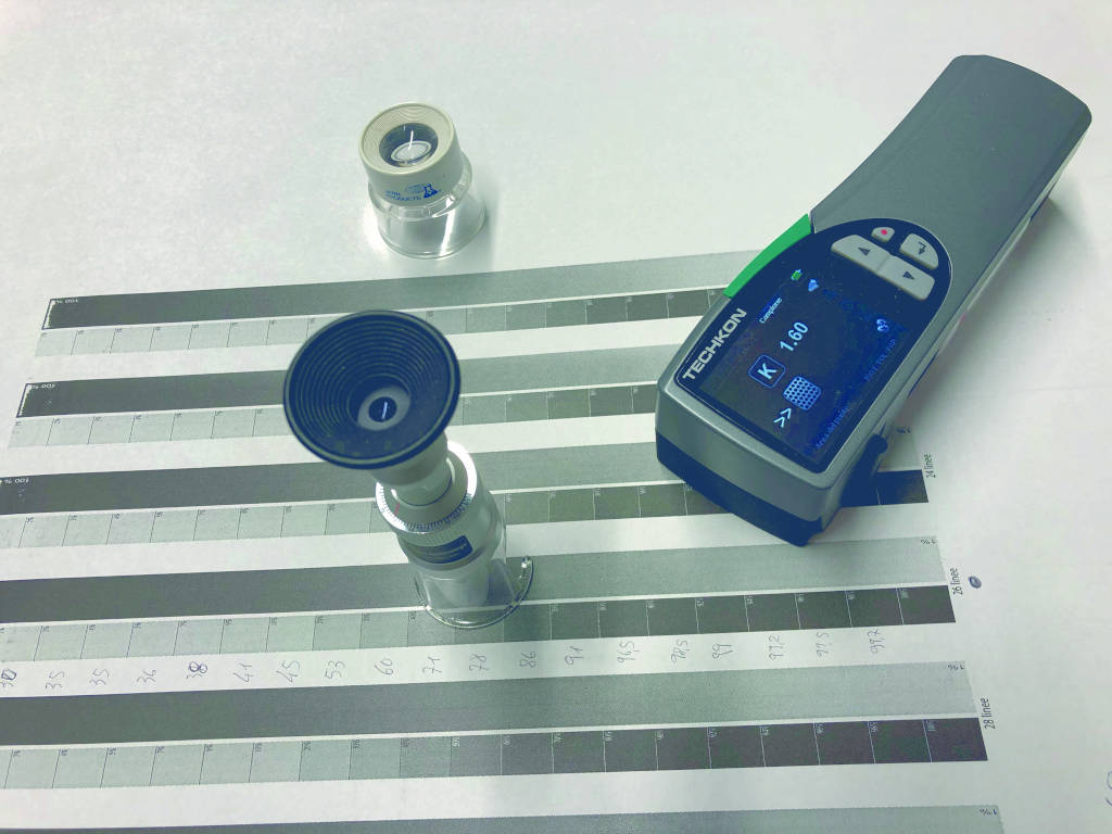 Le analisi dei test di stampa presso la nostra sede o dallo stampatore sono eseguiti con l’uso di spectro densitometro Techkon